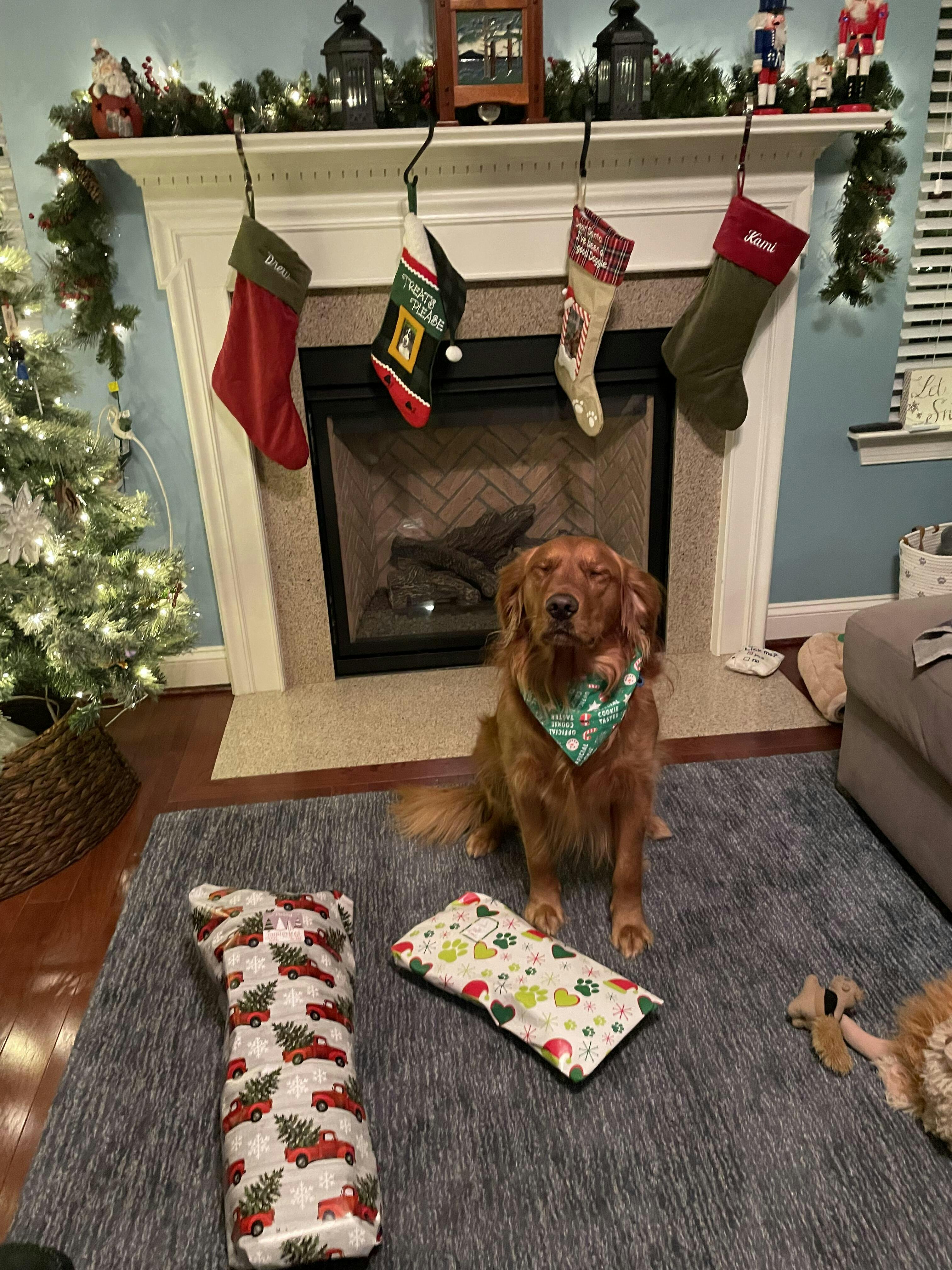 The Official Cookie Taster Hound Hankie is festive & perfect for your helper in the kitchen during the holidays. When not baking, flip the hankie over for a classic vibrant green, red & white stripe. Reversible means more bark for your buck! Top stitching increases durability and creates a polished finished edge. A curved neckline makes the Hankie more comfortable (no bunching up of fabric); the labels are woven.